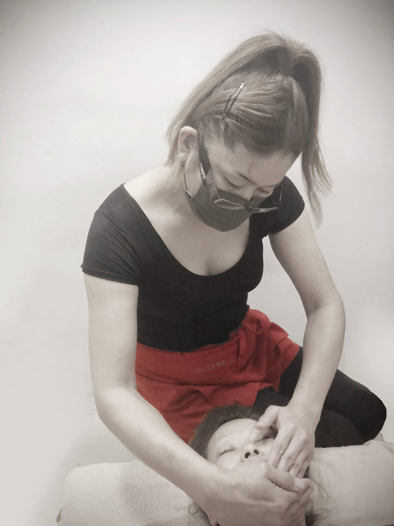 まず、体全体のバランスを整えることから始めます。長い歳月をかけて動かなくなり錆びてしまった体を活性化させ、スムーズに動くようにして、そこに溜まった老廃物を流し、若い時の状態に近づける事を心がけ、施術をしています。